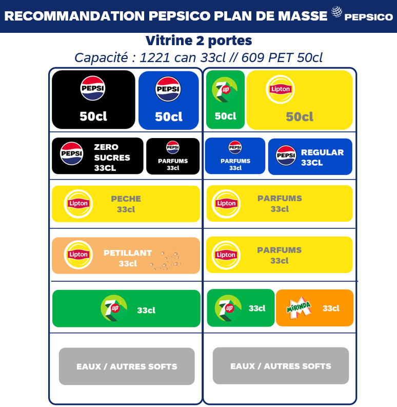 • La mise à disposition d’une vitrine est à valider avec le commercial Pepsico et sera pour une durée définie dans le contrat.